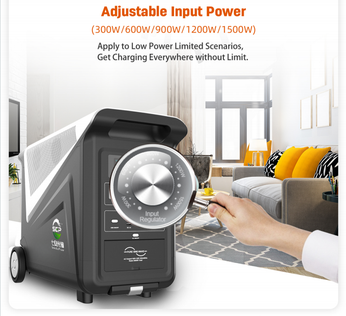 | Input Power | Adjustable by Knob (300W/600W/900W/1200W/1500W) | Control charging speed to protect circuits or conserve power. |