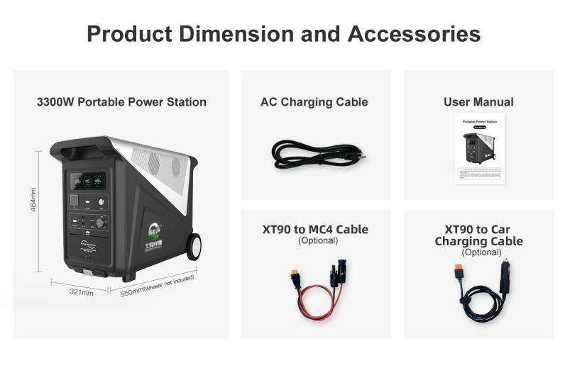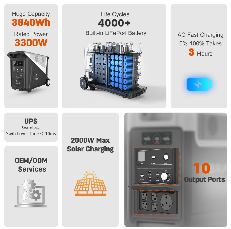 | AC Output | 3300W Max (USA & JP Standard) / 3600W Max (EU Standard) | Powers high-wattage tools, appliances, and devices simultaneously. |